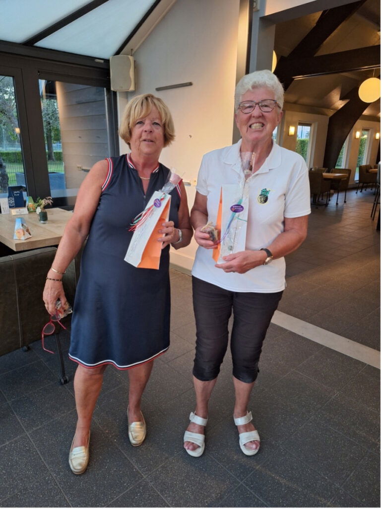 Natuurlijk zijn de prijswinnaars gehuldigd. Bij de hoge handicappers was dat Judi Sterrrenburg en bij de lage handicappers was dat Geraldine van Ravenhorst.